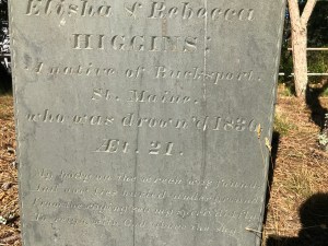 But as necessary as water is to life, it is also an agent of death and destruction. You can appreciate the beauty of the ocean from the shore, but, as one mariner once told me, “if you venture out into the ocean, you better respect it.” The ocean bottom is littered with ships great and small caught in storms and wrecked on shoals. The ocean has claimed the life of many an experienced skipper who made but one dangerous miscalculation. The cemetery down the road from where I live contains the remains of some. One of them was Elisha Higgins, Jr., son of Elisha and Rebecca Higgins. He died at sea in 1836. His epitaph reads: