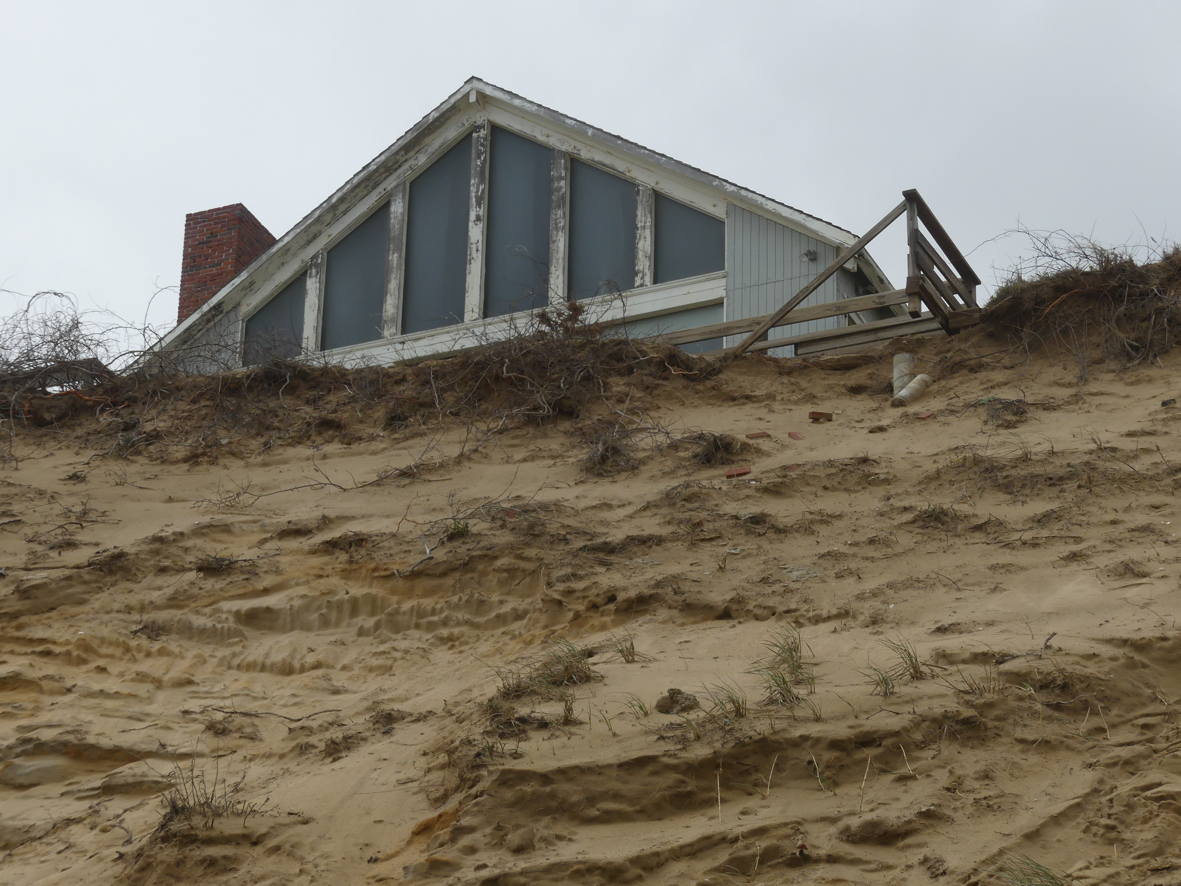 Again, we who live on the Cape are painfully aware of this reality. The ocean is literally taking the ground from under our feet. Cape Cod is being eaten away by the ocean at an average rate of three feet per year-and that is without the aid of global warming. There are not a few summer homes and cottages, once a safe distance from the ocean’s edge, that are not long for this world-like the one pictured. The Cape is only about twenty-thousand years old. While that precedes all recorded human history, it constitutes a mere second in terms of geological time. Another ten thousand years and the land I am living on will be under the ocean.
