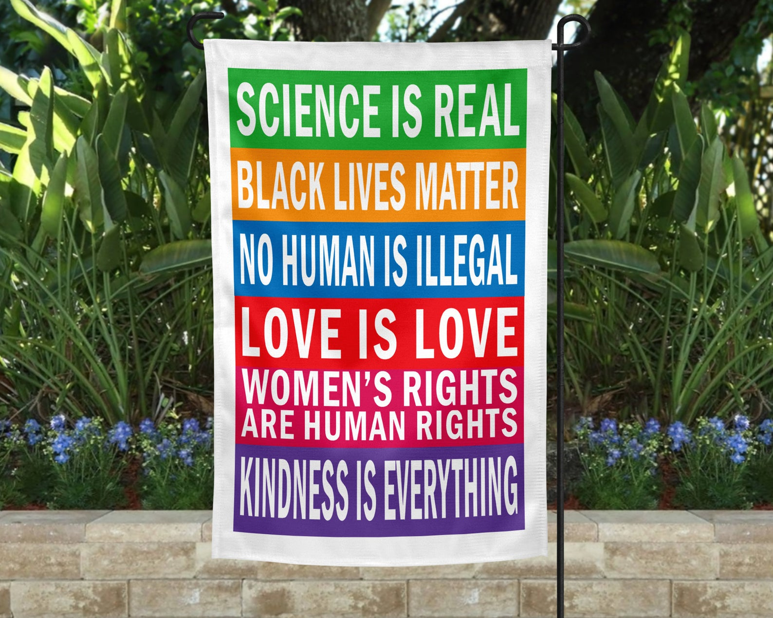 It is for this reason that science, the search for understanding of our planet, its place in the universe, the complex ecosystems that make up our world and the millions of creatures whose lives they support is so very important. It is for this reason Black lives, that have mattered too little historically in our nation, matter so very much at this moment in time. It is for this reason that families cannot be ripped apart, the last door to sanctuary closed or life saving food, water and shelter denied to anyone on the basis of which side of an arbitrary line drawn on a map they happen to be. It is for this reason that love, being the very glue that binds the Trinity, is not merely a human emotion among others, but the creative and redemptive power that drives the universe. It is for this reason that the full humanity of women, whose bodies bore the incarnate Lord, cannot be enslaved under patriarchal hierarchies. It is for this reason that kindness really is everything. Because the one who poured out his life in love is the hand through which God is at work in the world, the affirmations on the above yard sign are not merely matters of human opinion. They are, whether the sign maker recognized it or not, matters of divine truth.