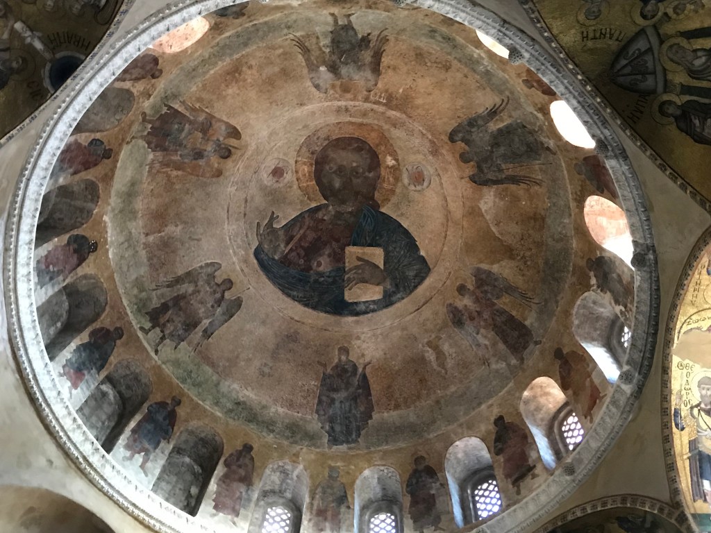 I have witnessed God’s reign breaking through. It happened for me at the Byzantine monastery Hosios Loukos in Greece where I had the opportunity to view some incredible iconic wall murals depicting scenes from the gospels. It is one thing to see these marvelous depictions in books or museum walls. It is quite another to see these century old paintings in the sanctuaries where they reside and where they still inspire and sustain worshiping communities. Particularly striking for me was a depiction of the Resurrection in which the resurrected Christ can be seen taking the hands of Adam and Eve and, by extension, the whole human race, raising them from death into life. It was as though I were looking through a portal into that awesome mystery surpassing all understanding. There were other depictions from the gospels, including Jesus’ baptism, the Transfiguration, Jesus’ washing the feet of his disciples and, of course, the cross. Each of these icons afforded a different view into that marvelous gospel narrative. The reign of God was all around me.
